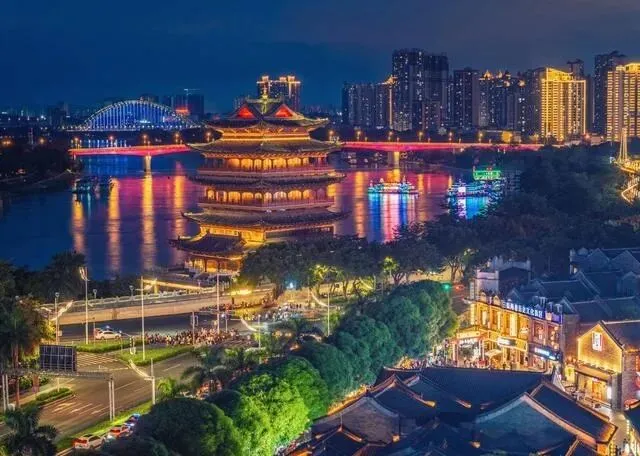邕江两岸适合傍晚,桥灯一亮,江面像铺了黑绸,风小人多也不闹心。