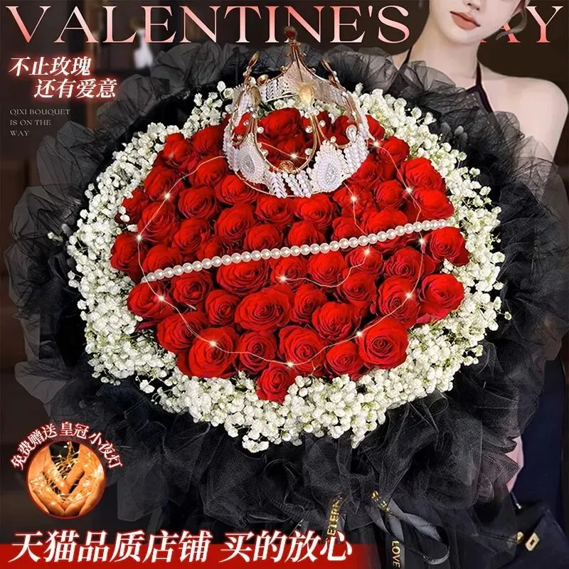 情人节送99朵玫瑰给女友的寓意:亲爱的,相信我,我会爱你一辈子,无论好坏,直到你的头发随着年龄的增长而变白,直到永远。