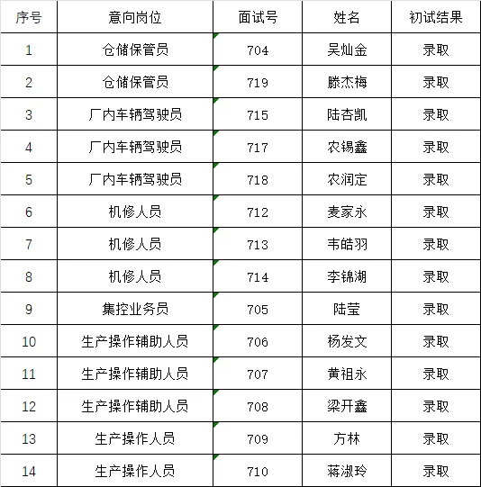请录取人员在面试集合地南宁太阳纸业生活区前集合,准时参加。