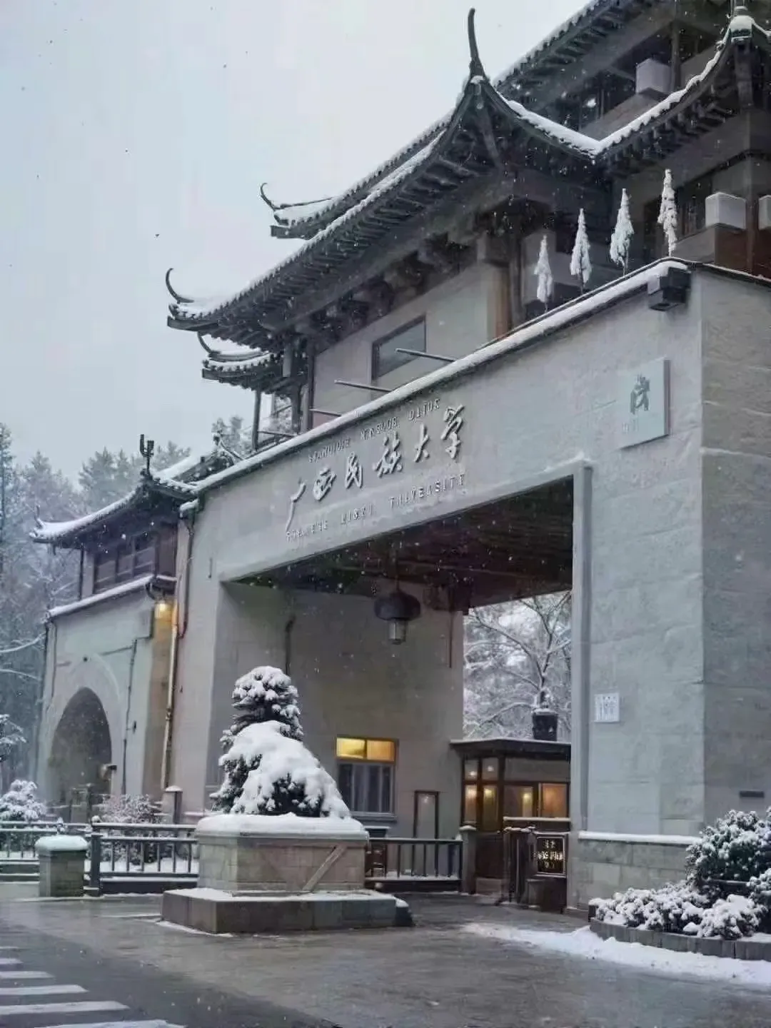 广西民族大学等地标建筑一片“银装素裹”