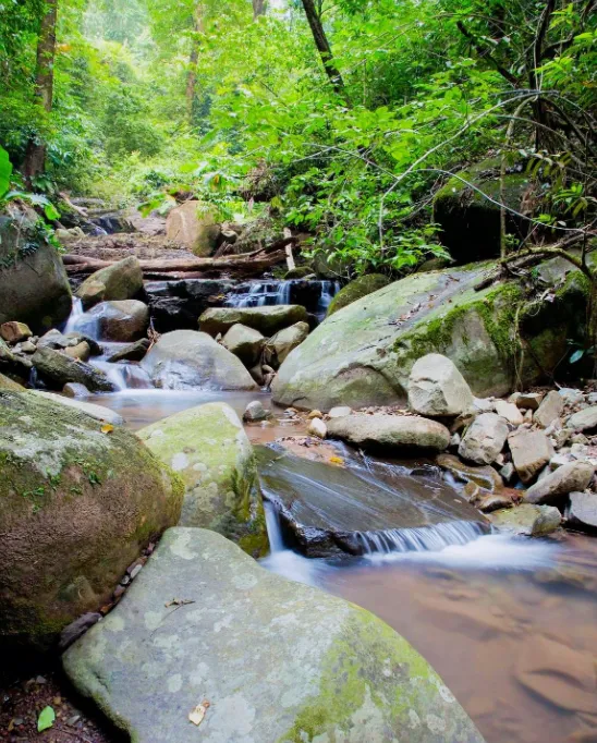 公园内森林覆盖面积超过72%,地下含水量充足,且雨季时间长,雨量充沛,集雨面积广。河水是从罗华山上流下来的纯正山泉,水质清澈,富含矿物质及对皮肤有益的微量元素。