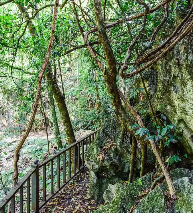 在中越边境的层峦叠翠间,屏峰雨林公园以“国门屏峰”之姿,静踞东兴市“绿色后院”马路镇平丰村,距市区20公里,如一块温润翡翠镶嵌于山水画卷之中。