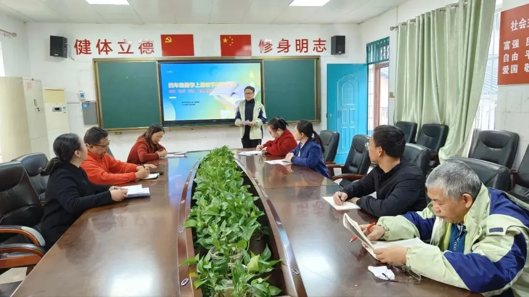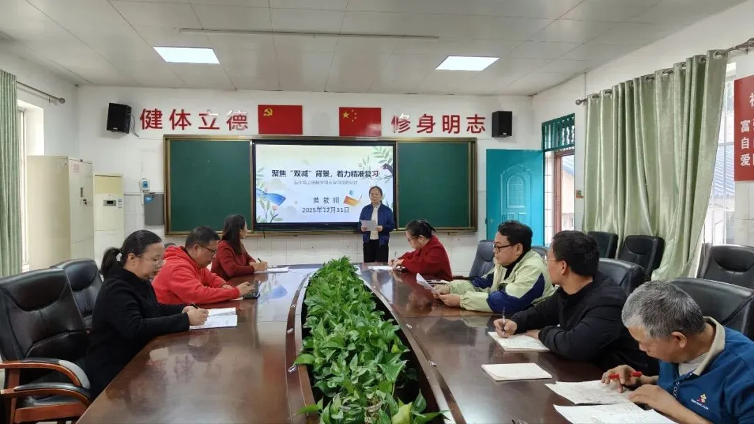 为深入落实“双减”政策,破解小学数学期末复习的教学难点,让复习课从“题海战术”转向“精准高效”,2025年12月31日,我校数学组开展了“聚焦‘双减’背景,着力精准复习”教师专题讲座活动。黄筱娟、蒋素萍、蒙树琳、陈河为四位老师,先后为全体数学教师带来了实用的教研分享。