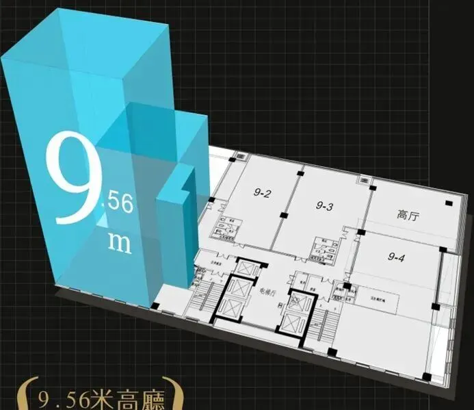 它的当时的设计就采用了市面上少见的高厅办公空间布局,5-8层高厅办公室挑高7米,9-17层高厅办公室挑高9.56米,柳州现在很多甲级写字楼都没有如此设计。去年两次法拍标的物列表上的1号房与4号房就是它的高厅产品。