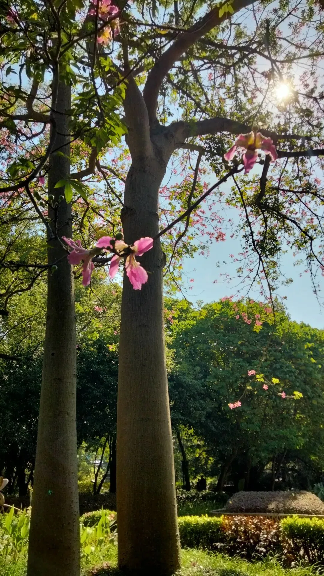从博物馆出来,夕阳正好。我决定用最后的时间,去街头寻找那抹传说中的粉色。车子穿行在城区,在一条不算主干道的街边,我看见了——几株高大的洋紫荆,正开得热热闹闹。秋日的洋紫荆,花量虽不及春季盛大,但那粉白相间的花朵,簇拥在枝头,在傍晚金色的光线里,有一种格外的清新与娇嫩。它们不是整齐划一的景观,而是这里一丛,那里几株,不经意地出现在楼宇间、江岸旁,像这座城市轻松哼出的小调。