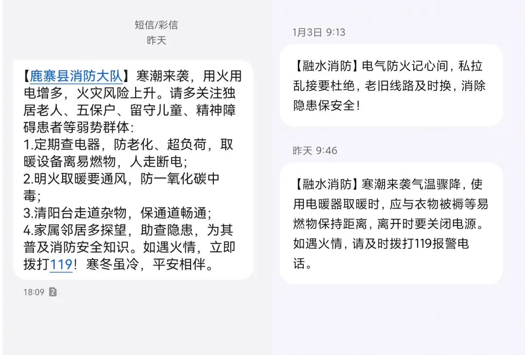 依托全市5000余个村屯大喇叭、1500余块LED电子屏,结合12辆消防宣传车巡回宣讲、无人机喊话等形式,全天候推送取暖安全、用电规范等提示。