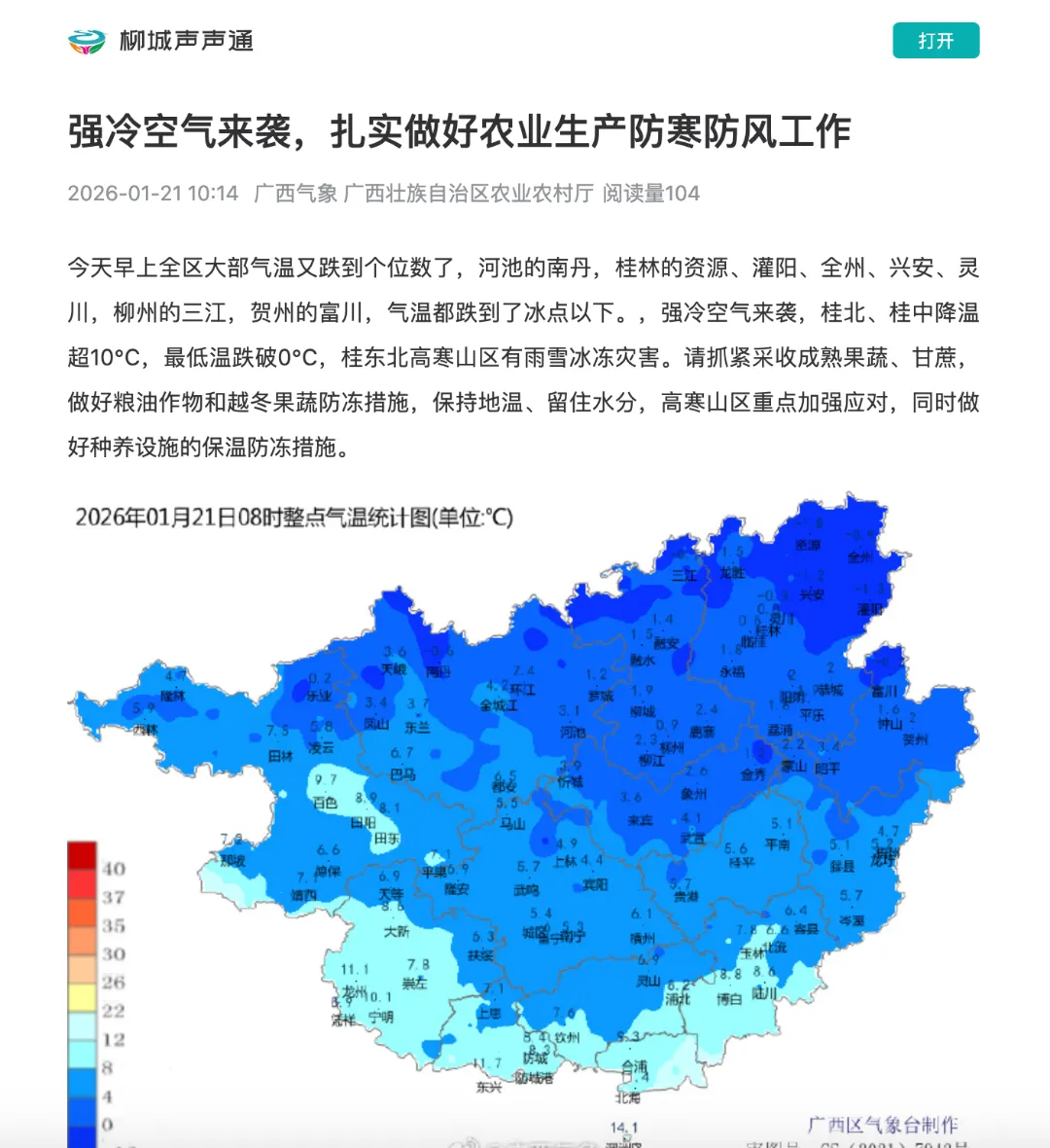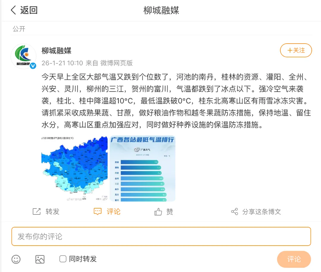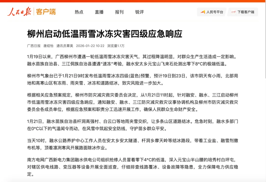 气温骤降,温暖不减!多家媒体聚焦柳州市积极应对低温寒潮