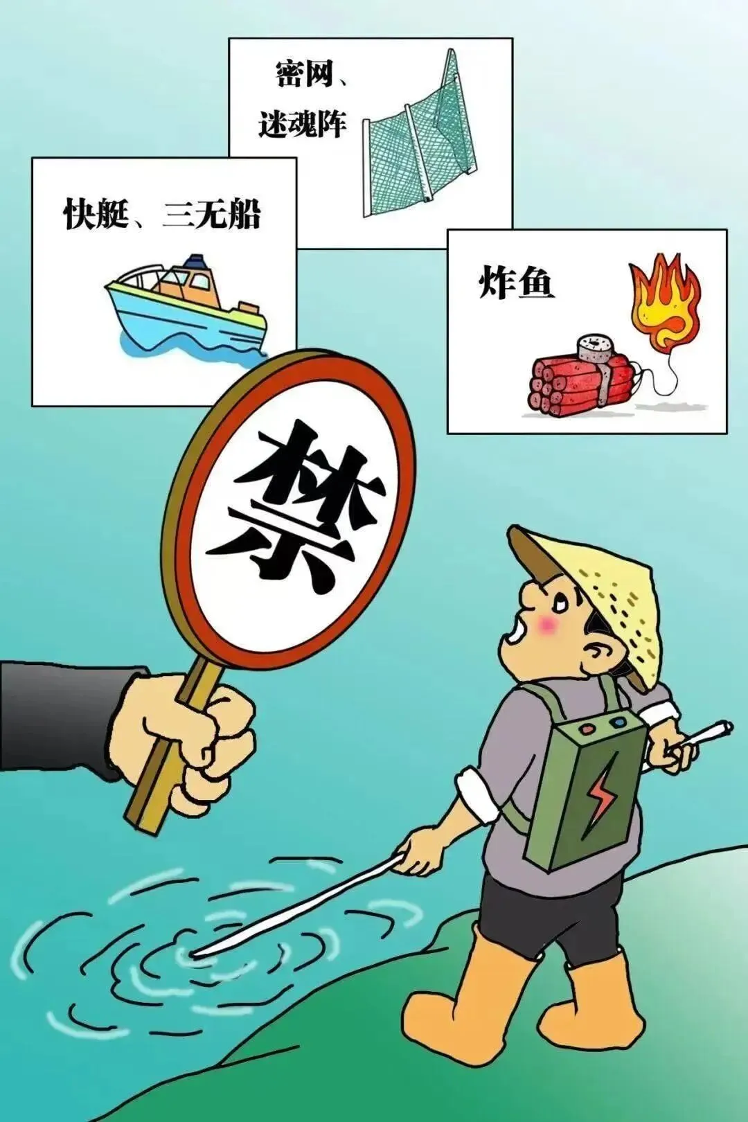《渔业法》第三十八条规定:使用炸鱼、毒鱼、电鱼等破坏渔业资源方法进行非法捕捞的,违反关于禁渔区、禁渔期的规定进行捕捞的,或者使用禁用的渔具、捕捞方法和小于最小网目尺寸的网具进行捕捞或者渔获物中幼鱼超过规定比例的,没收渔获物和违法所得,处五万元以下的罚款;情节严重的,没收渔具,吊销捕捞许可证;情节特别严重的,可以没收渔船;构成犯罪的,依法追究刑事责任。 在禁渔区或者禁渔期内销售非法捕捞的渔获物的,县级以上地方人民政府渔业行政主管部门应当及时进行调查处理。 制造、销售禁用的渔具的,没收非法制造、销售的渔具和违法所得,并处一万元以下的罚款。