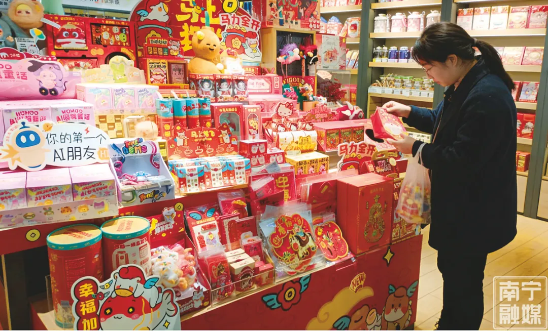 随着春节脚步的临近,南宁各大商超瞄准“过年经济”,推出了新颖、有趣、时尚的商品,为即将到来的新春佳节营造红火、热闹、吉祥的氛围。