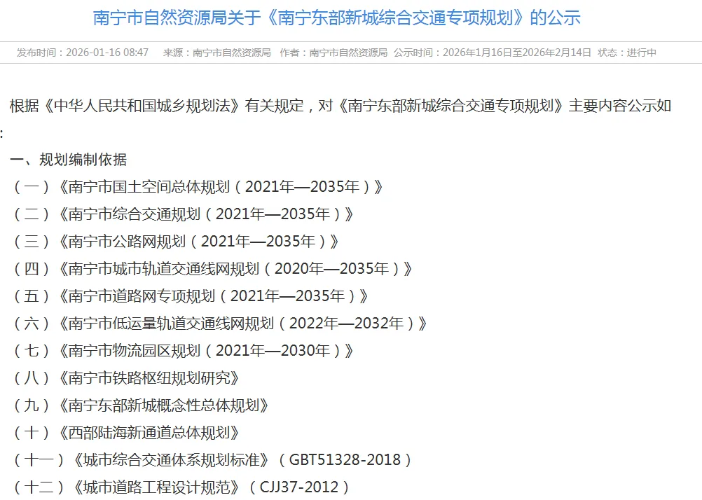 近日,南宁市自然资源局公示的《南宁东部新城综合交通专项规划》,直接给伶俐、六景等发展按下快进键。