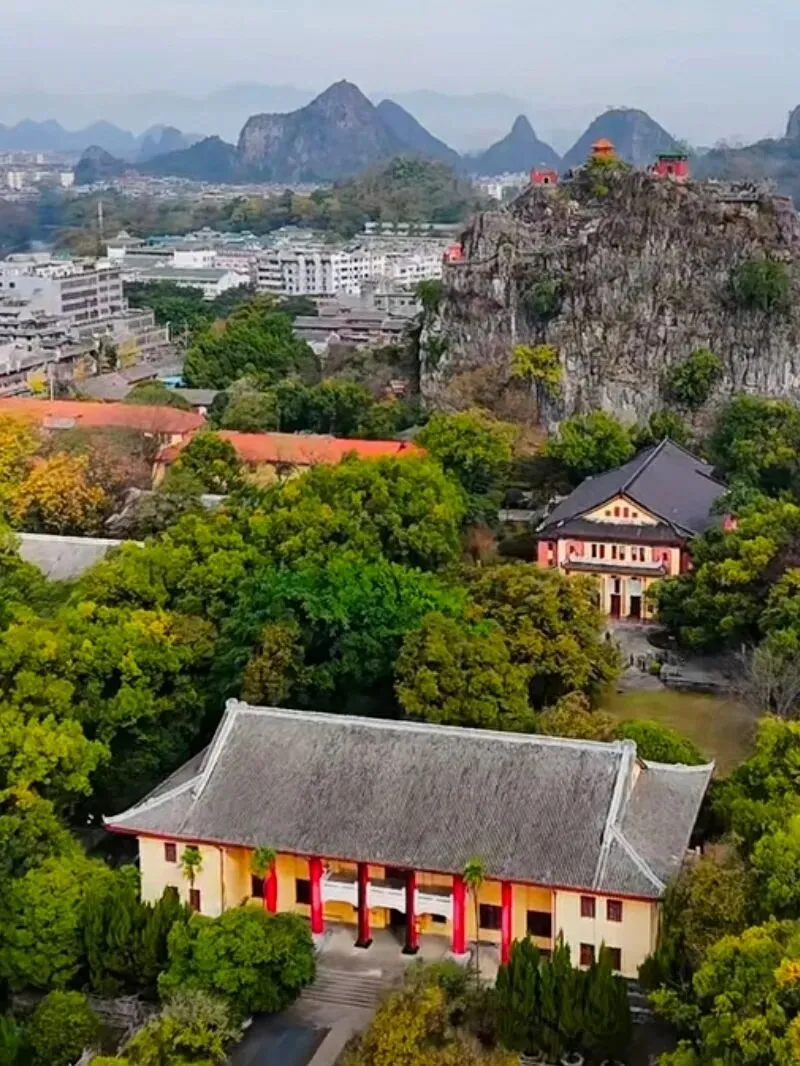 靖江王城里有独秀峰,明代藩王府,石刻多,走进院里能闻到古树的味道。