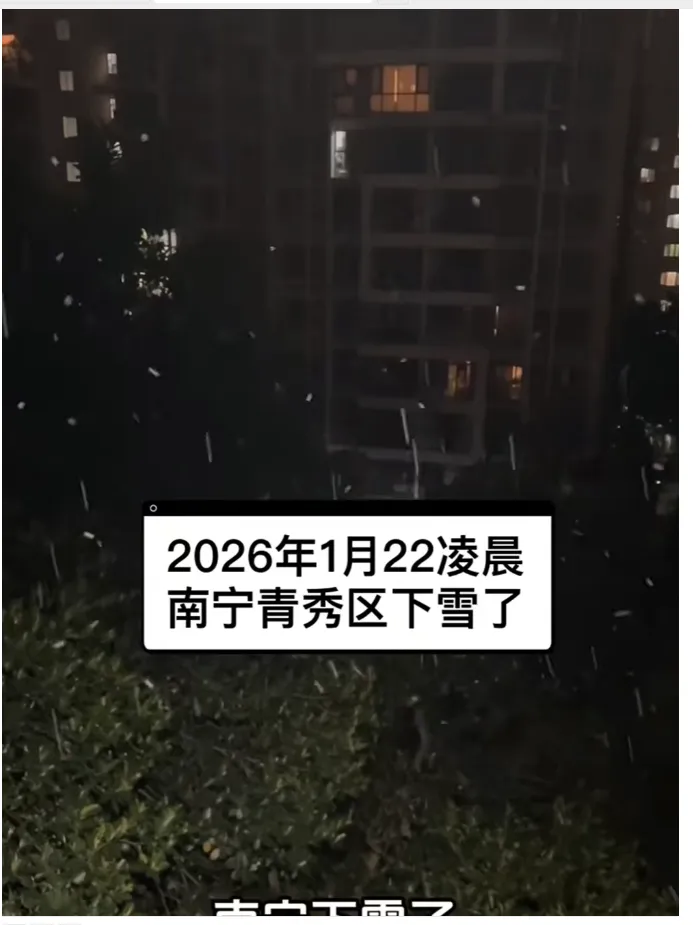 “南宁市区下雪啦! ”1月22日,家住青秀区的网友发视频说青秀区下雪了,在22日凌晨。