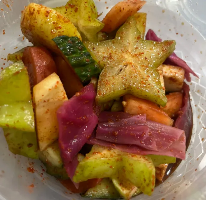 到窑埠古镇找点酿菜,口味偏甜,配啤酒正合适。