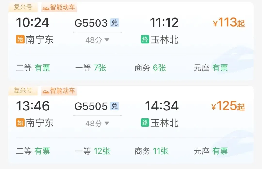 南宁东至玉林北最快只需48分钟