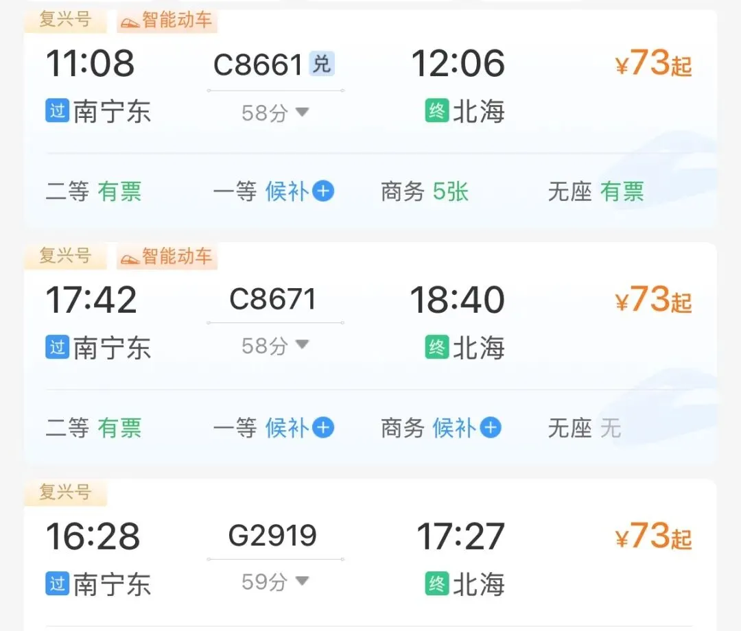 南宁至北海间每日开行列车约40趟