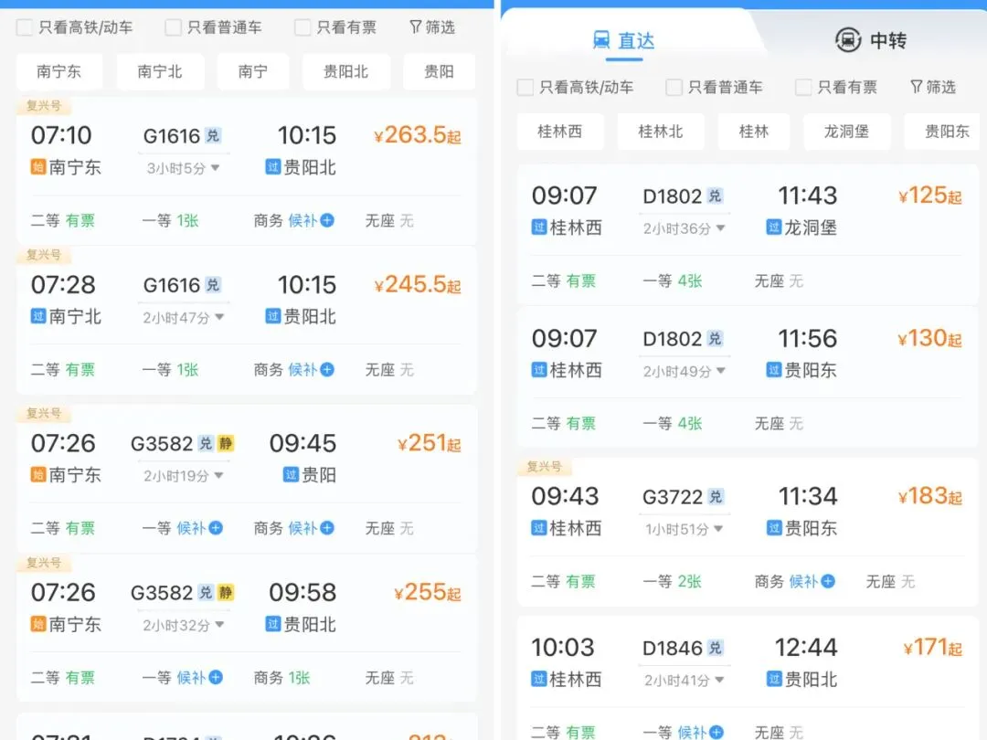 桂林至贵阳、南宁至贵阳