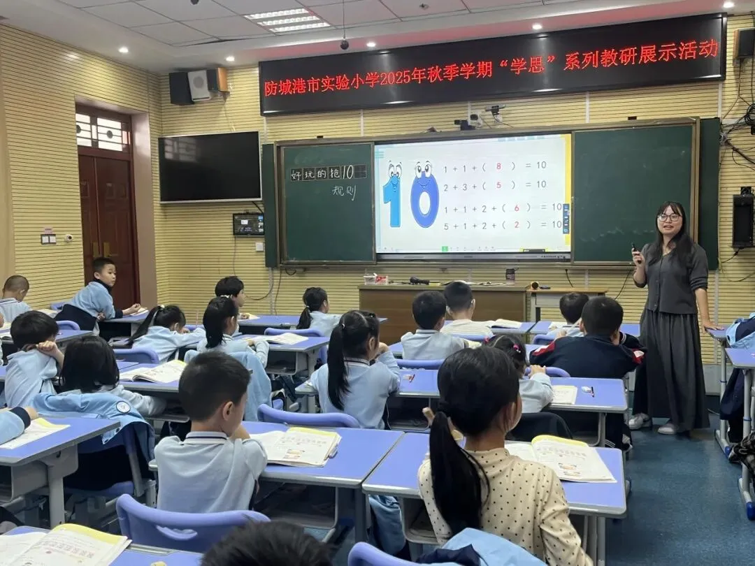 图为:朱小玲老师执教一年级数学课《好玩的抢“10”》