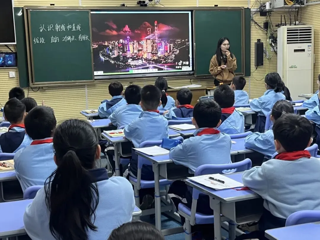图为:蔡佳意老师执教四年级数学课《认识射线和直线》