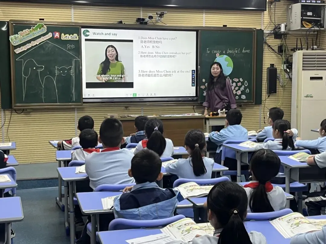 图为:陈思妃老师执教三年级英语课《Unit 3 Our animal friends! A let’s talk》