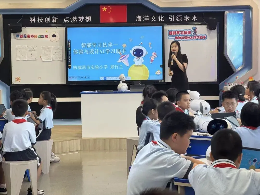 图为:郑竹兰老师执教四年级信息技术课《智能学习伙伴》