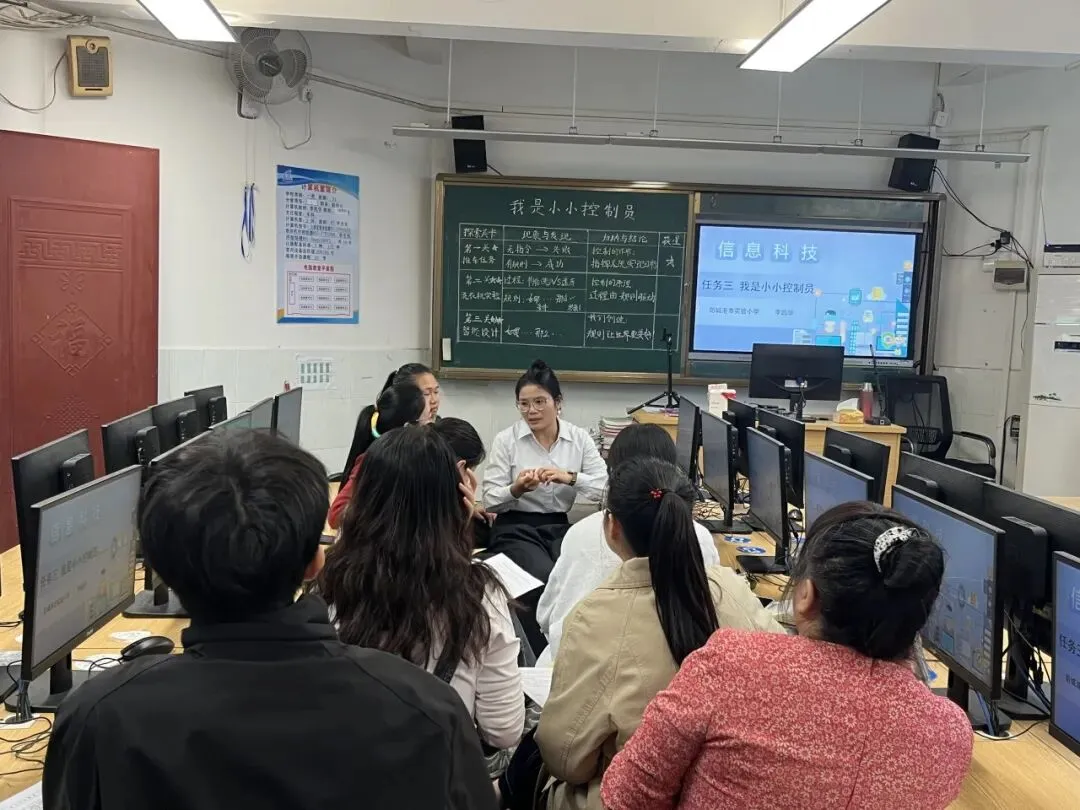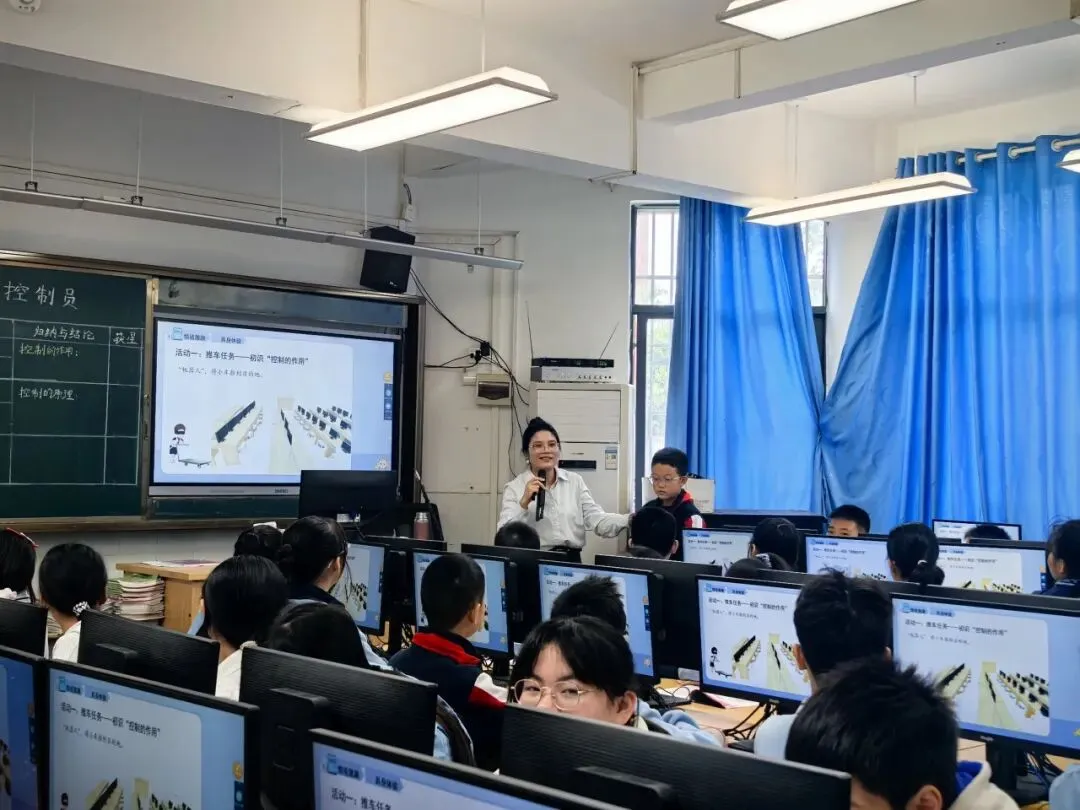 图为:李凯华老师执教六年级信息技术课《我是小小控制员》