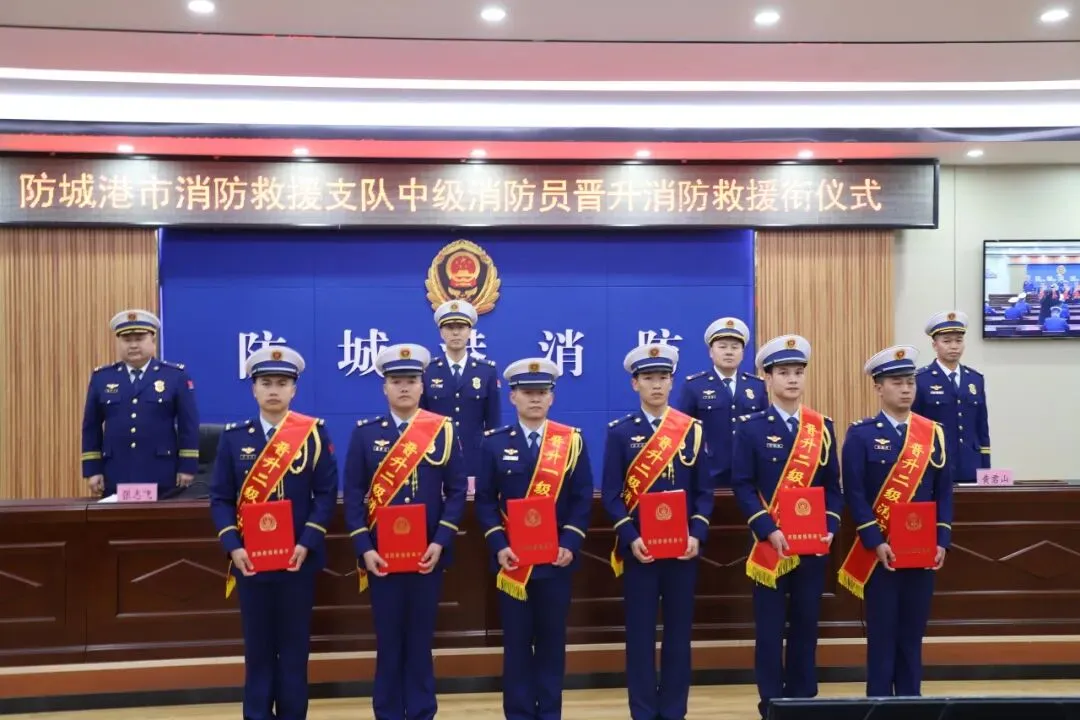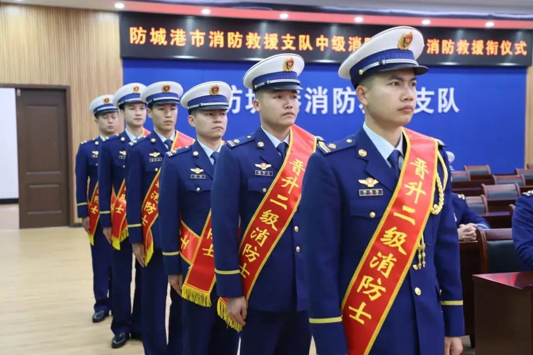 【晋升】新衔耀征程 使命再出发——广西防城港支队举行2025年中级消防员晋升消防救援衔仪式