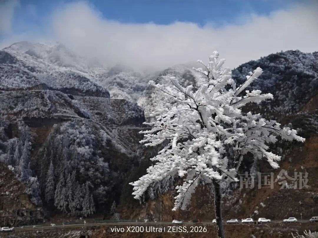 “太值了!终于见到南方的雪了!比想象中还要震撼!”1月22日,柳州市民钟先生带着满心期待,与朋友一同徒步登上了融水元宝山,在银装素裹的山林间实现了自己的“初雪梦”。