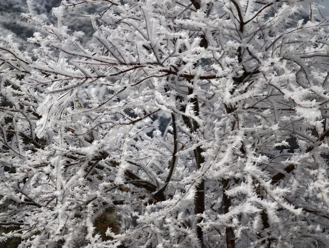 随着低温雨雪天气降临,广西第三高峰元宝山迎来今冬集中降雪,晶莹的雾凇与皑皑白雪交织成南国罕见的冰雪盛景,吸引众多像钟先生一样的南方游客慕名而来。