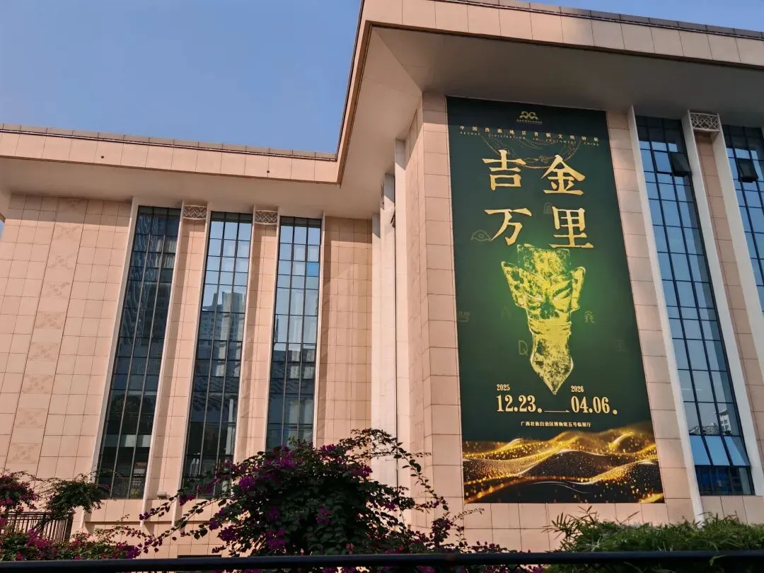“中国西南地区青铜文明特展——吉金万里”正在广西区博物馆二楼五号临时展厅展出,从2025年12月23日持续到2026年4月6日。古代巴蜀文化、滇文化、夜郎文化的青铜文物展品首次大规模赴广西展出。其中以21件(套)三星堆文物展品、47件(套)金沙文物展品为代表,另外还包括42件(套)晚期巴蜀文化文物、45件(套)滇文化文物、22件(套)夜郎文化文物,30件(套)广西本地文物。