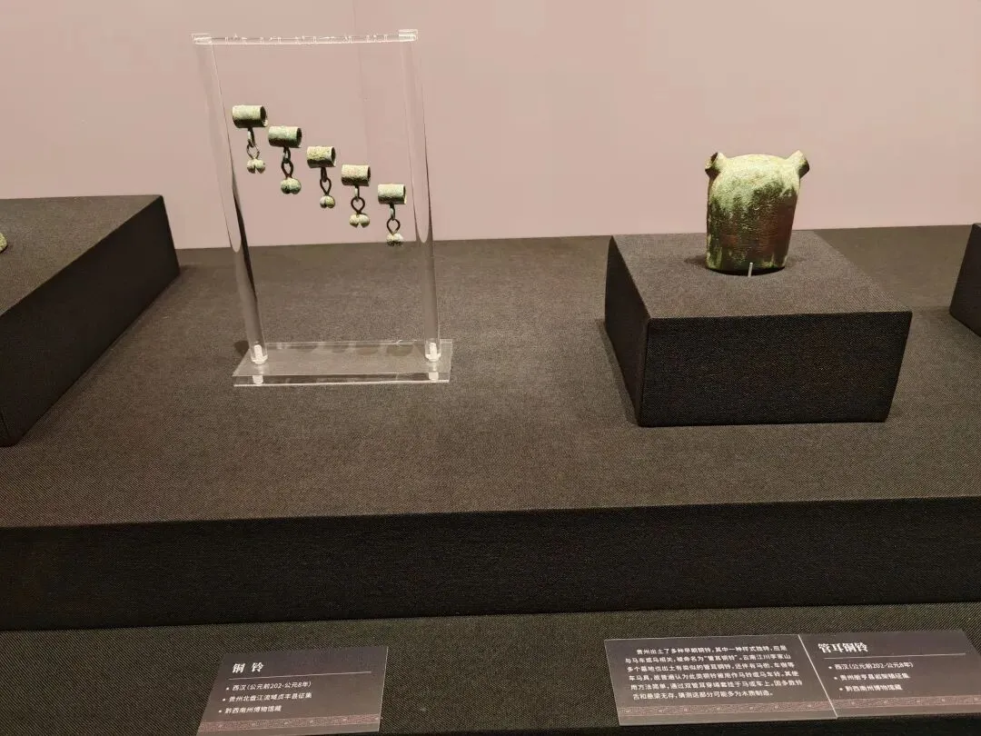 越过横断山脉,向东望去,是另一片天地。这里的先民在崇山峻岭间披荆斩棘刀耕火种,从商周一路走来,于秦汉进入社会繁盛时期,西邻古滇,西北连巴蜀,东北接中原,南靠南越——不同地域的文化相互交往融合,使得黔桂地区的青铜文明异彩纷呈。有釜、剑、护手一类实用性的工具,也有羽纹铜凤灯这样兼具装饰美的器具,更有青铜钟这样高工艺水准的礼乐仪器。乐器的出现,意味着文明进入高级阶段,人们不再满足于口腹之欲,开始追求精神生活。