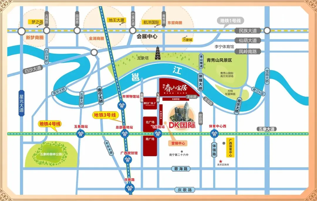 交通👇接驳五象大道,龙提路等,与地铁4号线【飞龙路站】仅约150米,一站换成3号线,交通便利。