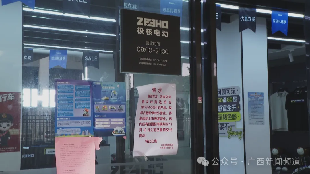 2025年12月1日,被称为"史上最严"的电动自行车强制性新国标全面实施,电动自行车新国标在销售环节正式实施,旧版国标电动车全面停售。然而政策落地快两个月了,有媒体人员实地走访发现,南宁新国标车销售遇冷,出现“无人买车”“无车可卖”的情况。有网友表示:“仙葫大道不少电动车店关门,就剩两三家”据媒体消息,近日在南宁市中华路,电动自行车销售较为集中的区域,不少门店门上都贴有"新国标产品未到货,暂停营业"的告示。