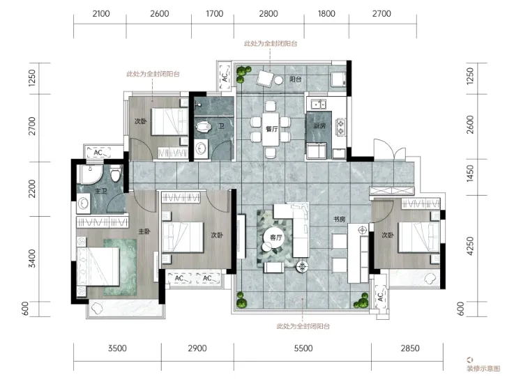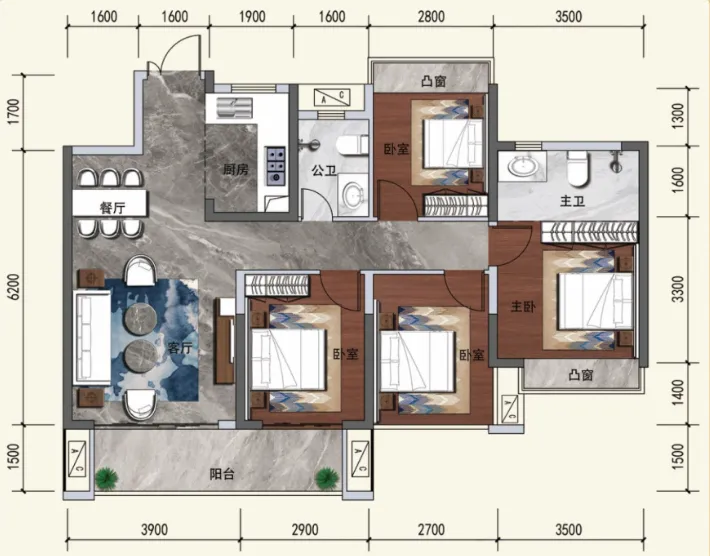 高拓展的户型设计,可以作五房使用,三阳台布局让整个户型采光通风都俱佳,大户型货量不多,很少有优惠,此次限时特惠优惠了17.4万,很适合觉得现在房子不够住的刚改家庭需求。