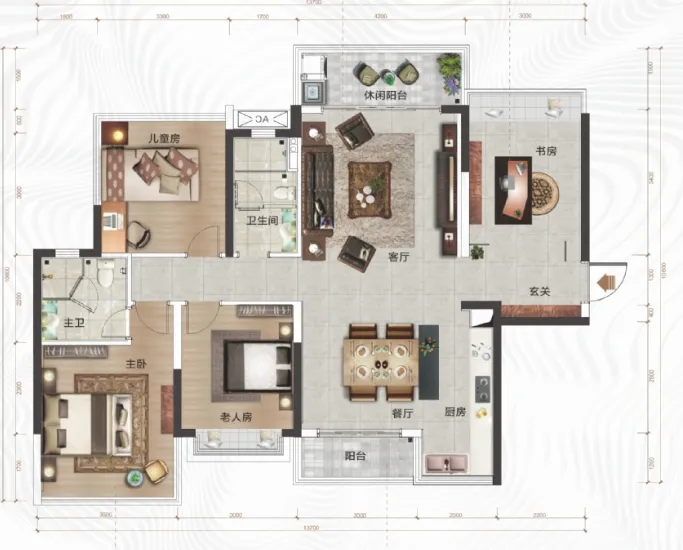 建面约137㎡四房户型图
