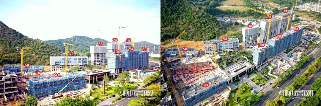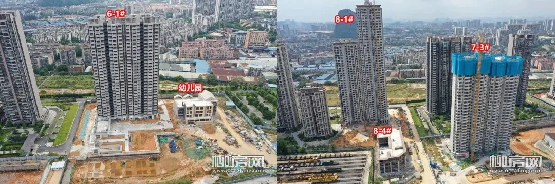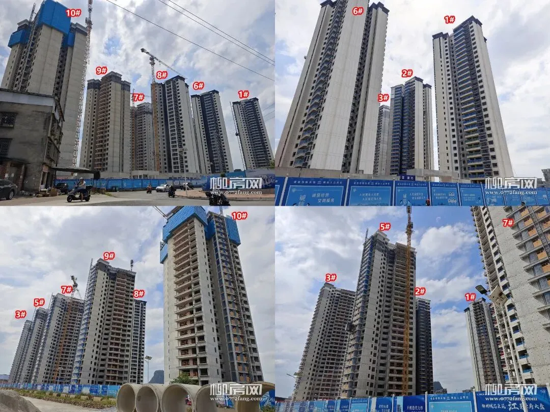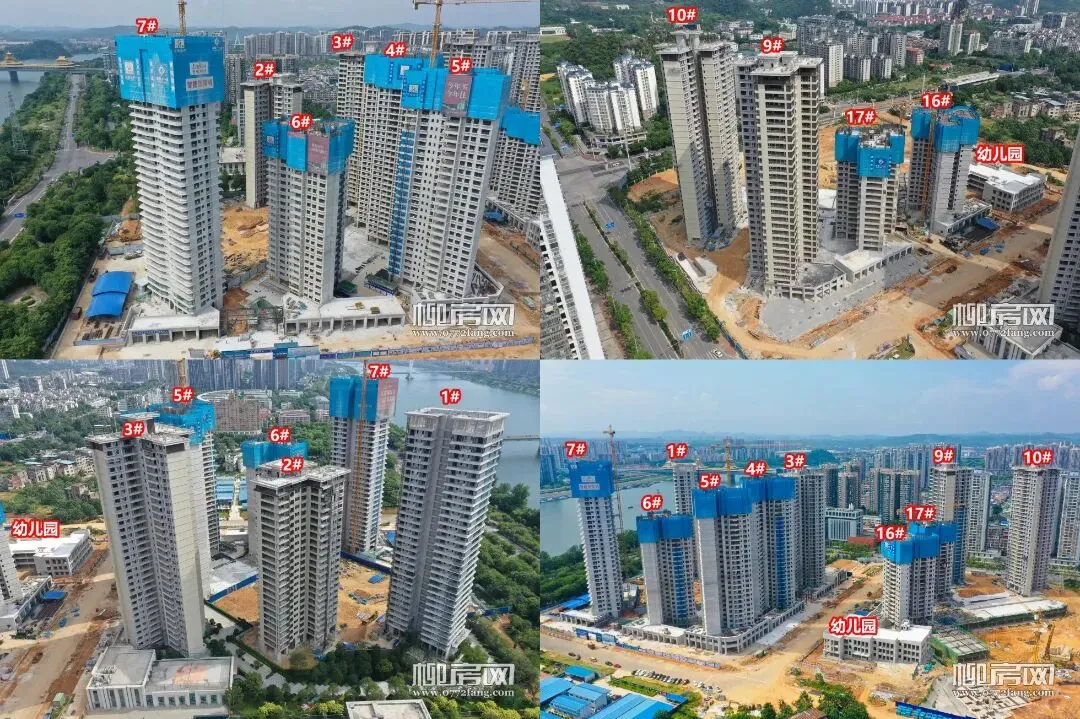 2024年9月工进:1-6#、9#、10#楼均已封顶,1-3#、9#、10#楼外墙涂料施工,1、3#楼玻璃安装中,9#楼落地窗安装中;4#楼屋面梁板钢筋绑扎完成25%;5#楼屋面钢筋绑扎完成85%;6#楼主体结构屋面板砼完成;7#楼建至34层;16#楼23层梁板砼待浇筑;17#楼22层墙柱封模;幼儿园配电房找平。(更新于9月30日)