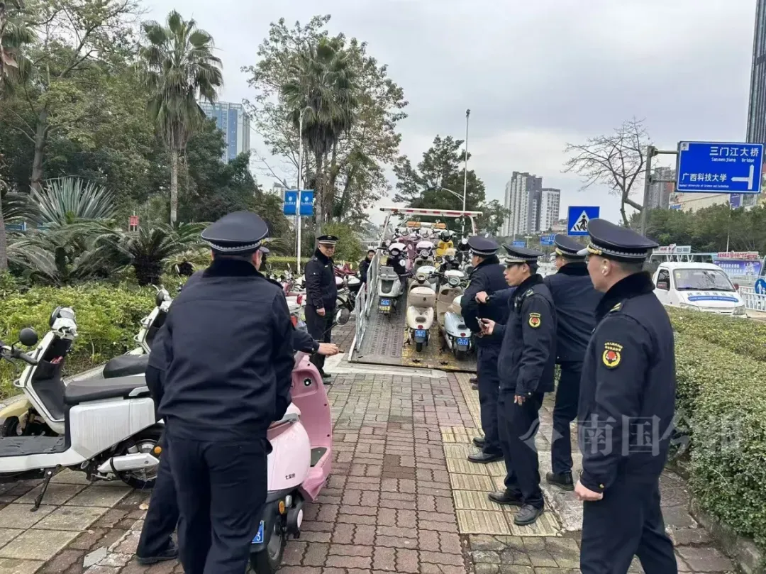 1月22日,针对市民多次反映的出租电动车占用公共车位问题,柳州市城中区综合行政执法局在文昌路、晨华路等路段开展专项整治,依法对83辆占道经营的出租电动车采取证据登记保存措施。