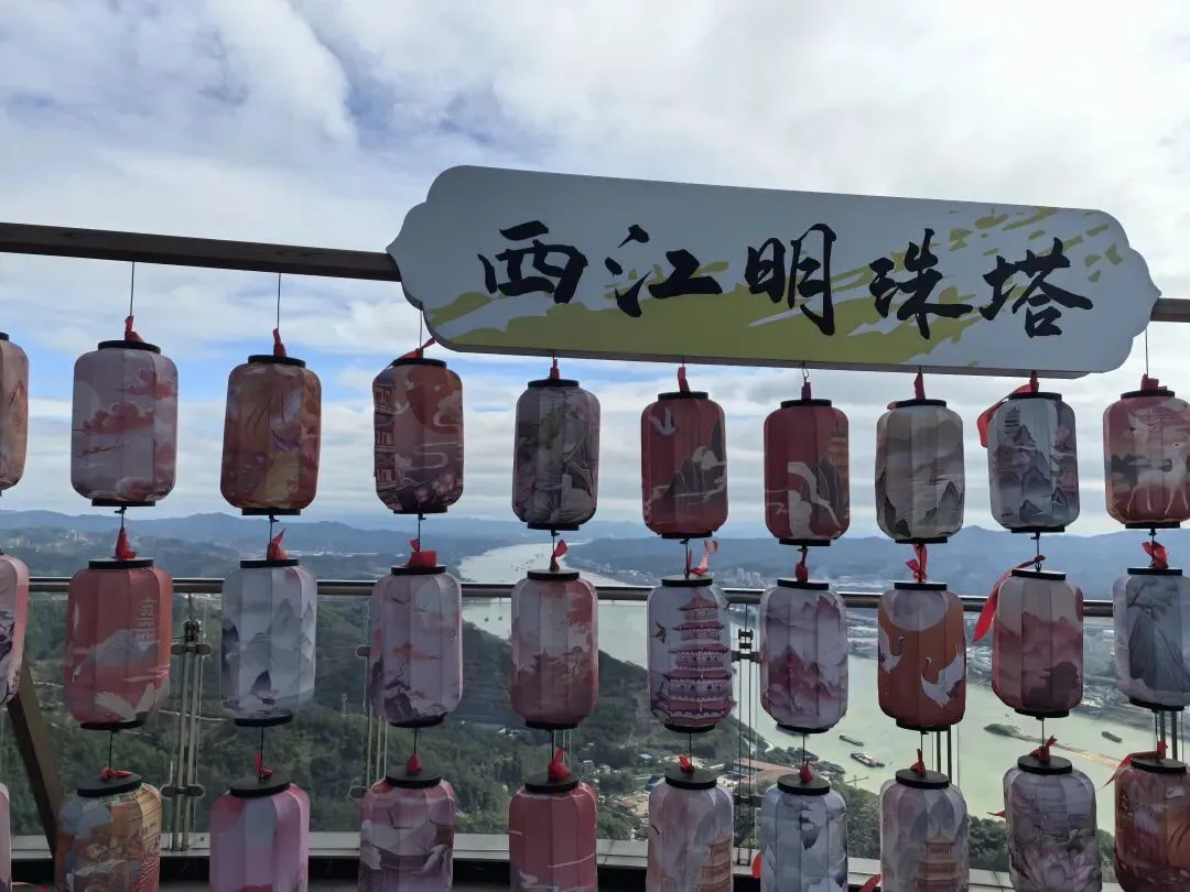 登西江明珠塔,搭乘电梯上23层,可以俯瞰两广,看西江之上的百舸争流(名票30一位)。