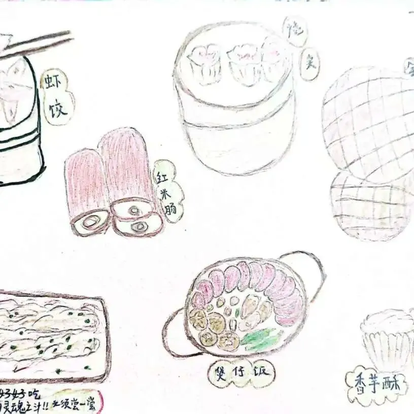 同学们一边品尝美食,一边用相机记录美食模样,用画笔勾勒品尝时的快乐心情,在味蕾与视觉的双重体验中,感受家乡美食的独特魅力。