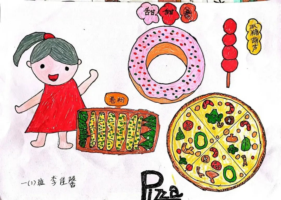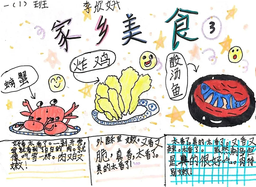 同学们发挥想象力,制作专属“美味日记”,用简单的图画和文字画出美食的样子,写下吃美食时的开心感受。一笔一划虽显稚嫩,却满是对家乡美食的喜爱,每一本日记都成了独属于孩子的美食记忆册。