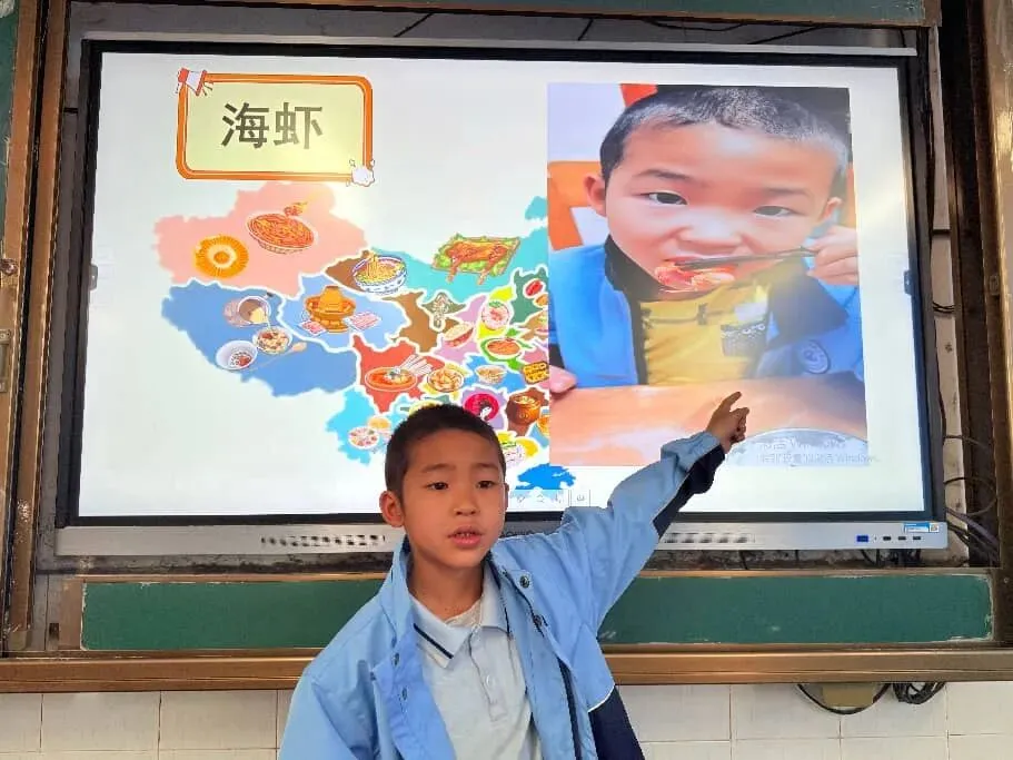 图为:港口校区“童言讲述美食故事”——学生分享照片