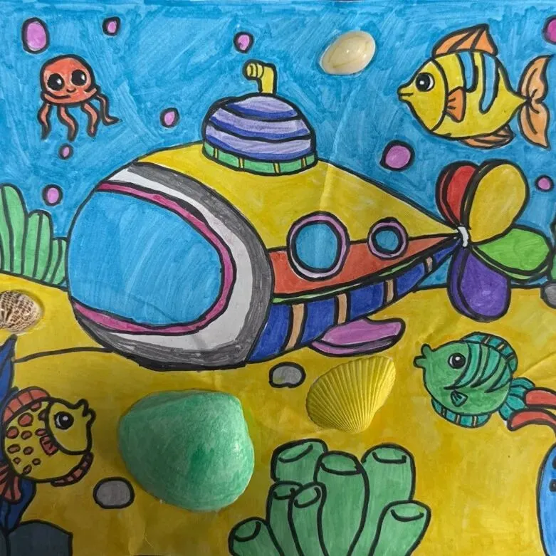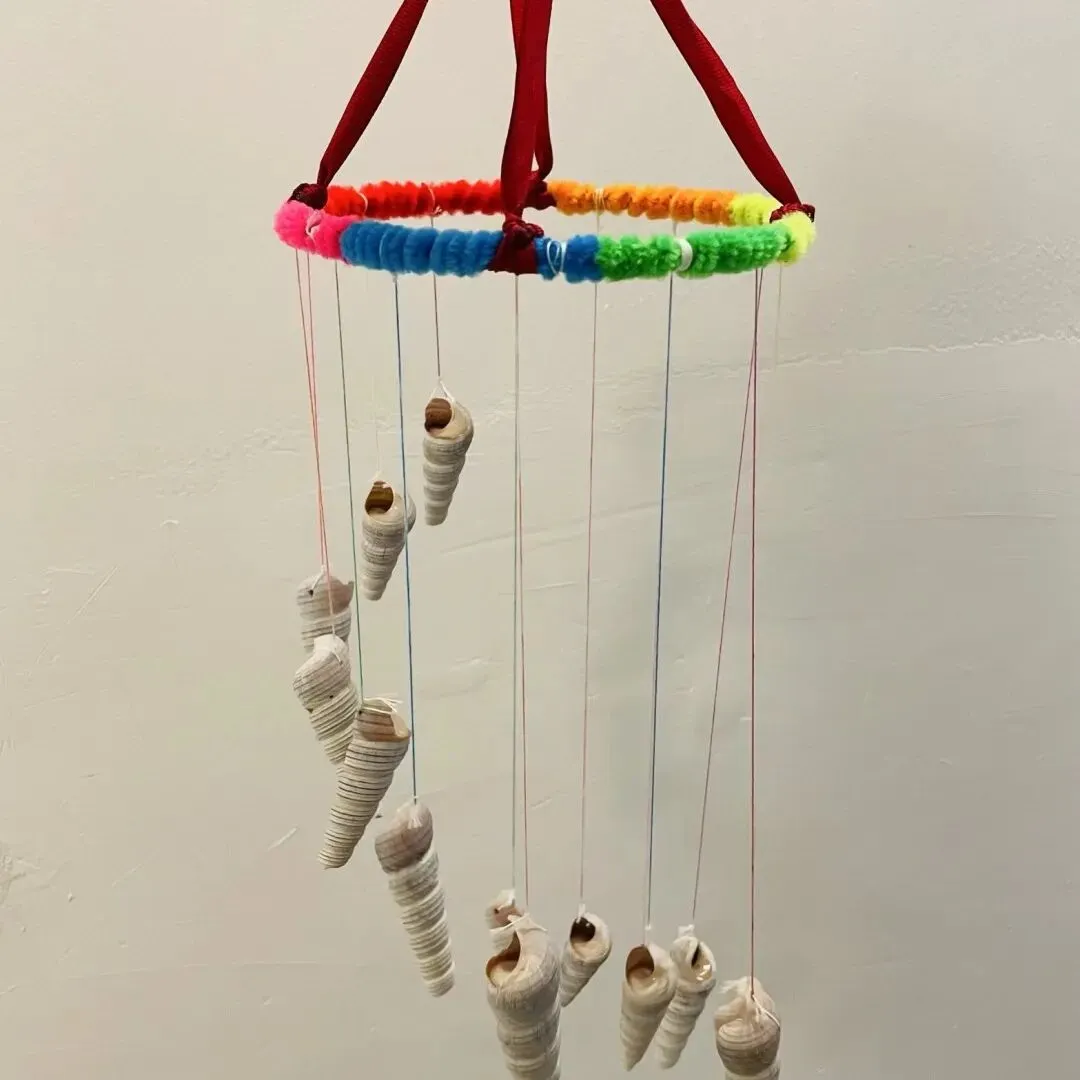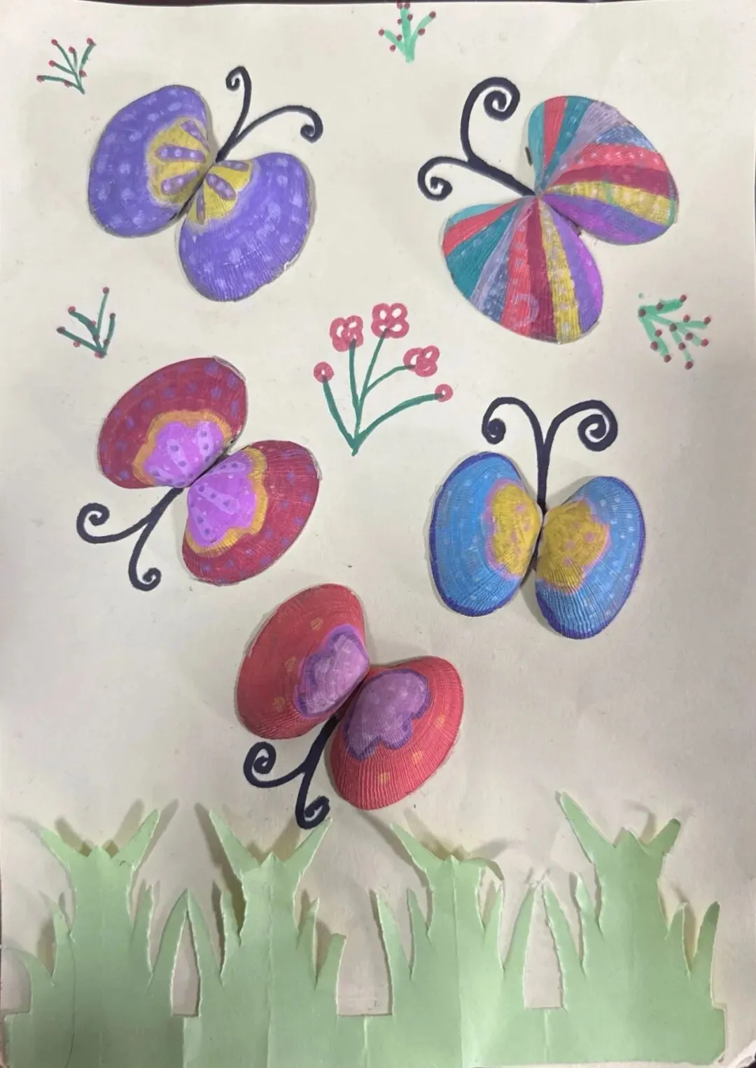 同学们收集贝壳、海螺等海洋元素,发挥创意制作海洋风铃和装饰画。贝壳碰撞发出的清脆声响,彩绳编织的精美纹样,都融入了同学们对京族海洋文化的理解,亲手制作的过程也让他们体会到京族人民浓浓的海洋情怀。