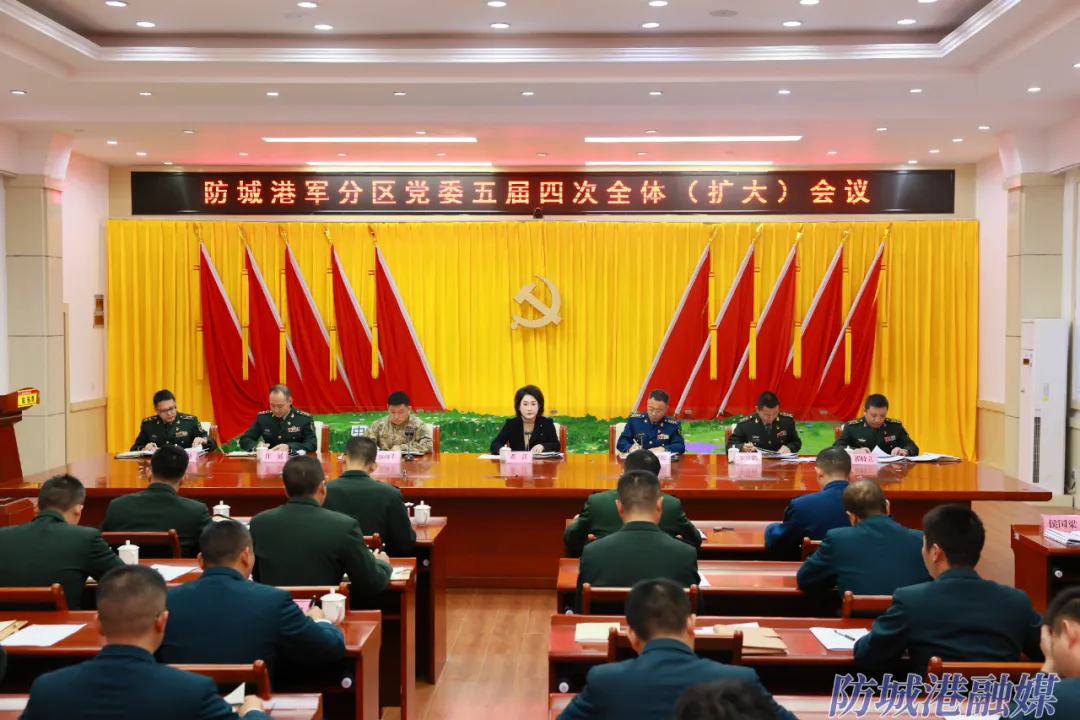防城港军分区党委委员,全体官兵、文职人员和职工参加会议。