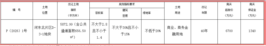 ,出让年限40年,出让起始价6700万元,竞买保证金1340万元。