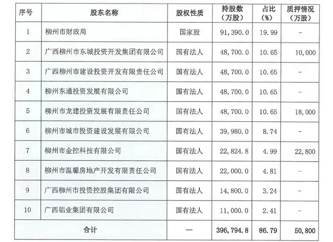 柳州市城市投资建设发展有限公司持股8.74%,为第六大股东;柳州市温馨房地产开发有限责任公司持股4.81%,为第八大股东;广西柳州市投资控股集团有限公司持股3.24%,为第九大股东。