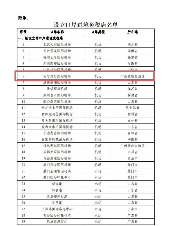 南宁吴圩国际机场入选新设立的口岸进境免税店名单。