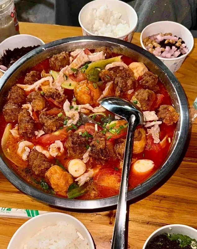 早餐得吃肠旺面。面是脆的,肥肠软糯,血旺嫩滑,红油往上一铺,一口下去,困意全消。中午随便找家小店吃酸汤鱼,那酸味是发酵出来的醇厚,不是醋精兑出来的尖锐。晚上,那必须是夜市。烤小豆腐、恋爱豆腐果,蘸着折耳根辣椒水,味道冲,但上头。