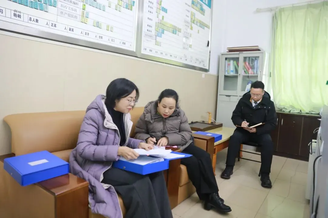 随后专家组分别深入医务部、护理部、病案室、门诊部、信息科、预防保健科、招标采购办、医学装备科等部门,通过实地查看、查阅台账资料、核对工作数据、与科室负责人及员工访谈等方式,对医院在医疗质量与安全、公共卫生服务、患者就医体验改善、护理员规范化培训与管理、药品耗材采购、智慧医院建设、平安医院创建、病案质量管理等方面的工作落实情况进行了细致评估。专家组对医院取得的阶段性成效给予肯定,也精准指出了存在的问题与不足,并提出了中肯的整改意见与建议。