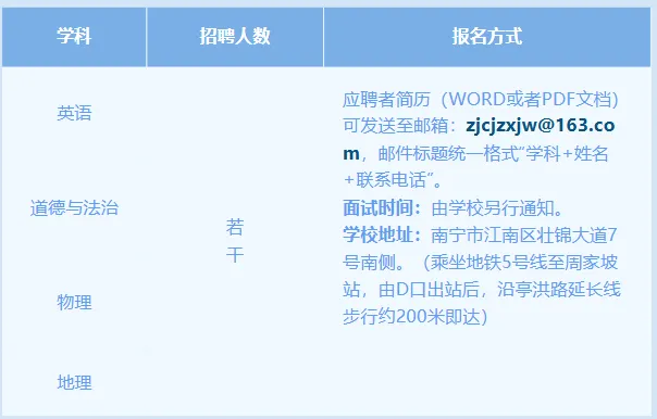 2026年春季学期南宁市第四十一中学关于公开招聘教师的启事
