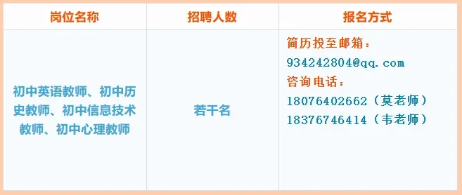教师岗:初中数学、初中历史、初中道法、初中地理老师若干
