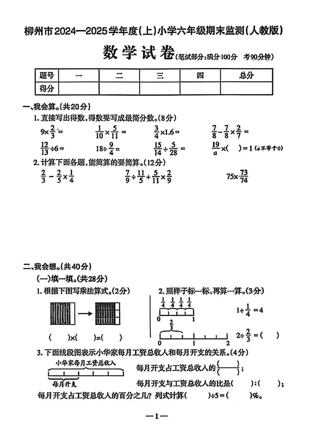 >真题丨柳州2024-2025学年度六上期末·数学
